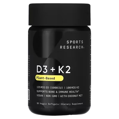 5. 骨骼与身心健康守护:Sports Research, D3 + K2,植物基素食软胶囊